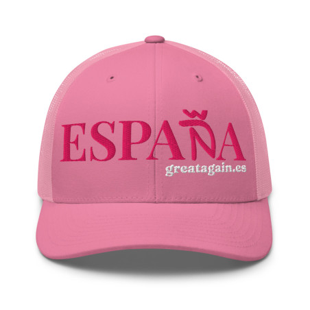 Gorra "España" color rosa y bordado en rosa y blanco con Ñ de Great Again tipo trucker (camionero).