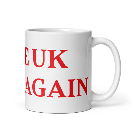 Taza clásica "Make UK Great Again". Tanto si estás tomando tu primer café del día o el quinto, esta taza es la ideal para ti. Perfecta mientras trabajas o descansas tras hacer UK Great Again. Es robusta y brillante con un dibujo vívido que resistirá al microondas y al lavavajillas.