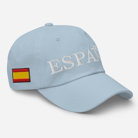 Gorra "España" color azul claro con letra en blanco y con bandera bordada (estilo Dad hat)